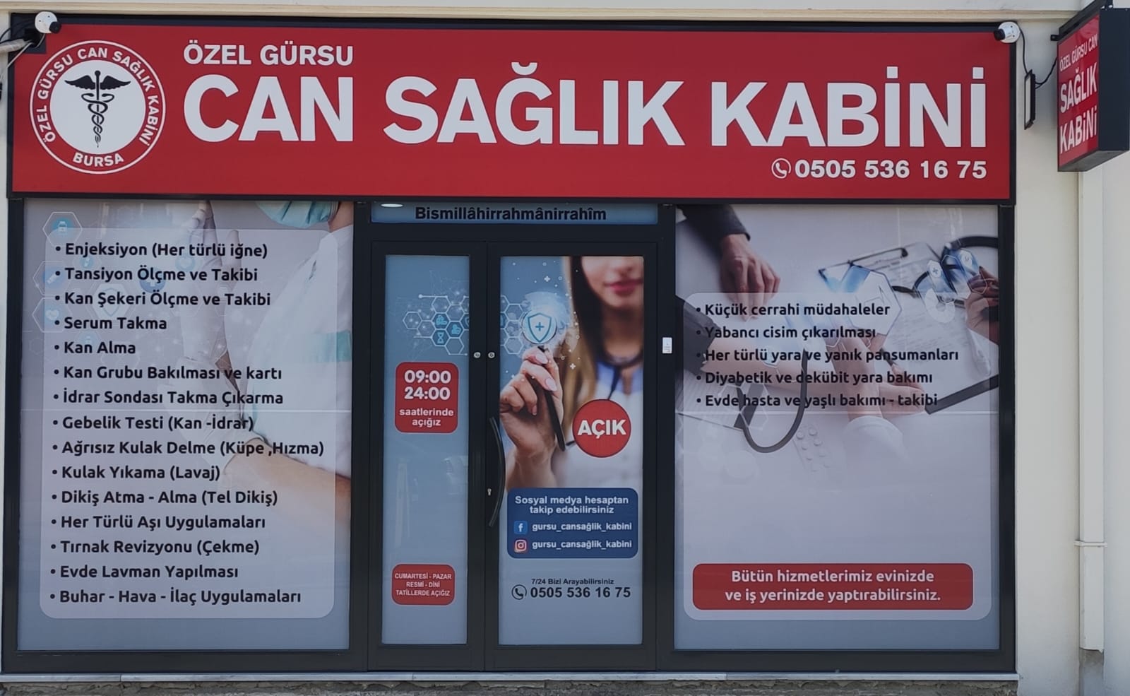 Bursa Gürsu Can Sağlık Kabini, pansumandan yara bakımına, kan alımından kulak lavajına kadar birçok çeşitli hizmet verilebilmektedir. Enjeksiyon (iğne işlemleri), şeker ölçümü ve takibi, kateter takılması, tansiyon ölçümü, dikiş atılması ve alınması, idrar ve beslenme sondalarının takılması veya değiştirilmesi, kan grubuna bakılması, kulak delinmesi, damar yolu açılması ve gebelik testleri gibi birçok hizmete belirlenmiş ücret tarifesi karşılığında ulaşabilirsiniz.